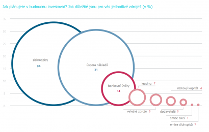 Nejčastějším zdrojem budoucího rozvoje firem zůstává vlastní zisk (34 %), úspory představují hned druhý zdroj investic (31 %). Poskytovatelé finančních služeb jsou teprve na třetím (bankovní půjčky 14 %) a čtvrtém (leasing 7 %) místě úvah firemního managementu o zdrojích financování rozvoje.